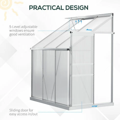 This lean to greenhouse from Outsunny is every gardener’s dream. The on-wall design will not take up too much space. The aluminium alloy frame creates a durable structure, whilst polycarbonate panels create a safe and heat-retentive shelter. Built-in side gutters let rain roll down naturally. The transparent finish of the panels allows natural sunlight to pass through for healthy growth. Get this practical tomato grow house, it’s time to fall in love with gardening all over again.