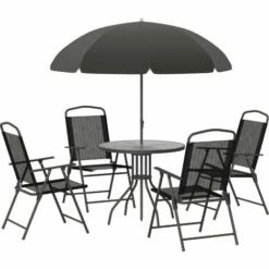 Check out this Outsunny outdoor dining set to complete your space. The set includes four foldable chairs, a round glass-top table and parasol umbrella – you’ve got everything you need to dine with family/friends and keep protected. The metal frames of each piece are strong and rust-resistant, with the breathable mesh chairs making them perfect for hotter climes. An excellent addition to your patio all year round.