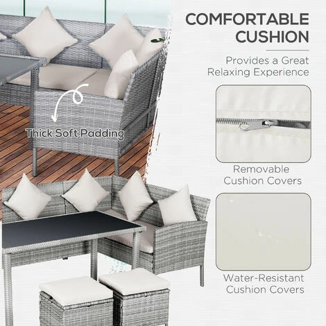 For an understatedly stylish and extremely comfortable garden sofa set, look to this conservatory furniture from Outsunny. Featuring two 2-seat lounger sofa, 2 footstool and a matching long table. The outdoor furniture is built from PE rattan with a galvanised steel frame for support. You’ll love inviting friends and family over when the sun comes out to shine.