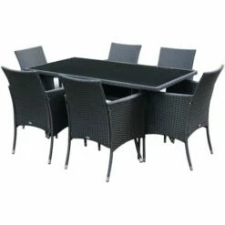 This deluxe 7piece rattan dining set is a great addition to patio or garden, made with high quality PE rattan and durable steel construction for sturdiness and long lasting. It also comes complete with a 5mm thick tempered glass for the table top, so you can use on a daily basis. It’s easy to maintain and keep clean using a damp cloth.