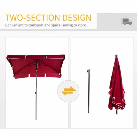 Make the sunny days even brighter with this oblong parasol from Outsunny. Made from aluminium, the pole provides strength and durability for years to come and supports the large canopy shade with four ribs for extra strength. Adjustable to different angles, the shade can provide sun shelter in many different directions up to 2.5㎡ in total, which is great for staying out all day long. It will perfectly protect you whilst you enjoy the warm and sunny weather.