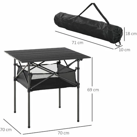 • Roll-up aluminium table top, lightweight and easy to carry