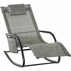 This outdoor rocking chair from Outsunny is a great way to relax outdoors. The curved frame has been made with your body comfort in mind, hugging to the contour of its shape. The seat is wrapped in mesh fabric which holds yours body in place, with a removable top pillow for head and neck comfort. Our patio rocking chair is finished with a removable side pocket, keeping everything you need next to you and rubber pads on the metal frame for protection.
