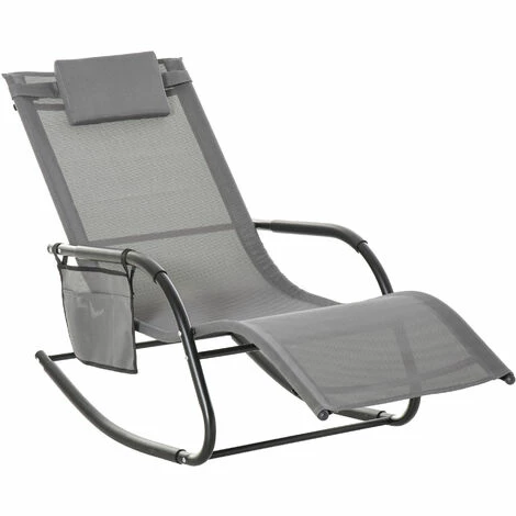 This outdoor rocking chair from Outsunny is a great way to relax outdoors. The curved frame has been made with your body comfort in mind, hugging to the contour of its shape. The seat is wrapped in mesh fabric which holds yours body in place, with a removable top pillow for head and neck comfort. Our patio rocking chair is finished with a removable side pocket, keeping everything you need next to you and rubber pads on the metal frame for protection.