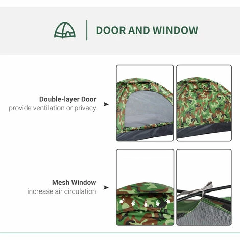 it’s time to enjoy outdoors with company. Two top mesh windows for fresh air. A two-layer zipped door offers ventilation and privacy – great for hot night. Strong fibreglass and ground pegs to make it stable when set up. When done, this camping shelter packs away into the carry bag.