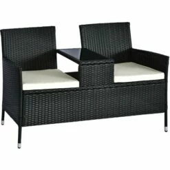 This stylish and modern double rattan sun lounger from Outsunny is suitable for yard, patio, deck, garden or home use. Solid metal pipe and durable PE wicker in excellent craftsmanship. Each seat has 1 cushion filled with 180g/㎡ cotton to provide higher degree of comfort. 18 kg gross weight allows it to be relocated as and when desired.