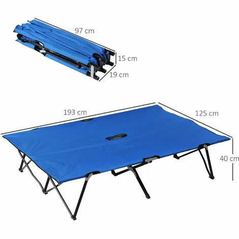 This Outsunny camping travel cot is a great addition for anyone who likes to go camping and see the outdoors. The folding system helps to make the unit compact and easy to carry. It s made from metal frame with Oxford fabrics which can hold up to 136kg. With a raised height and a length of 193cm will fit most people for a comfortable seating or sleeping. The cot comes ready to use and will be ideal for travelling.