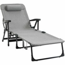 This sun lounger from Outsunny is perfect for relaxing in the sun for hours on end. The seat, made from breathable mesh fabric, comes with a padded headrest to keep your head comfortable and supported. An aluminium frame, with four long legs for plenty of support, the back can be set to seven different positions. A side cup holder so you can enjoy a nice cool drink without having to move. And when done, you can fold this lounger up to store easily.