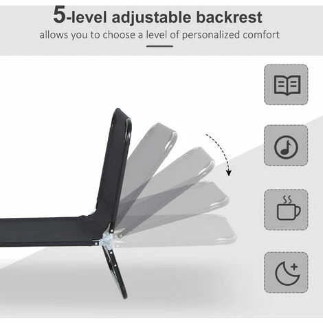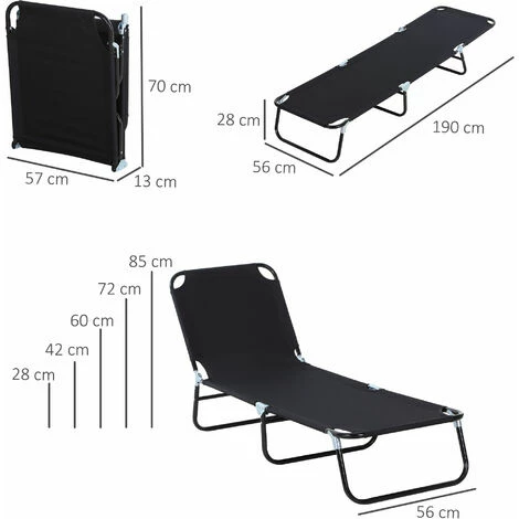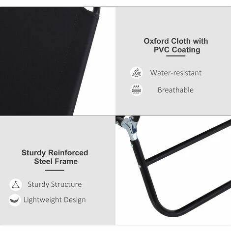 Our Outsunny folding sun loungers for garden is strong, comfortable and will support you all afternoon long. Reinforced metal frames keep you supported – fabric seats are fitted to keep you comfortable. Three long legs keep the lounger balanced. The back can be set to four different positions – choose a position you prefer best.