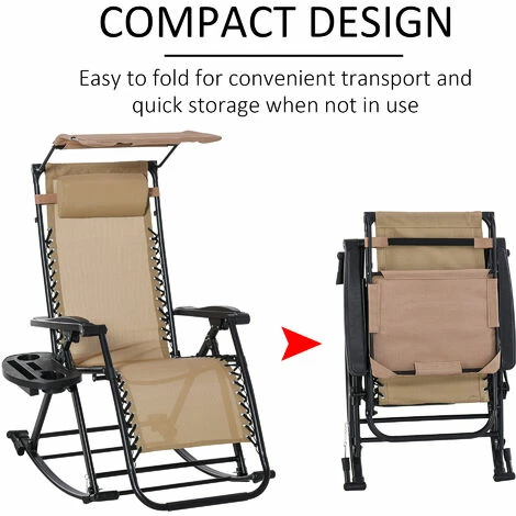 The garden rocking chairs for adults from Outsunny are the perfect gateway to total relaxation in the sun. The powder-coated steel frame forms a tough structure, where the seat is attached to the base for a floating zero-gravity feel. The back freely adjusts between a 10°-35° angle so you can lie back to a position you like. The fabric seat and padded headrest make the garden rocker comfortable, finished with a handy side tray and top canopy to shield you safely.
