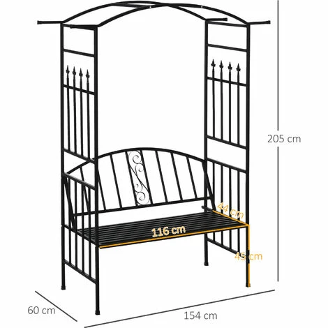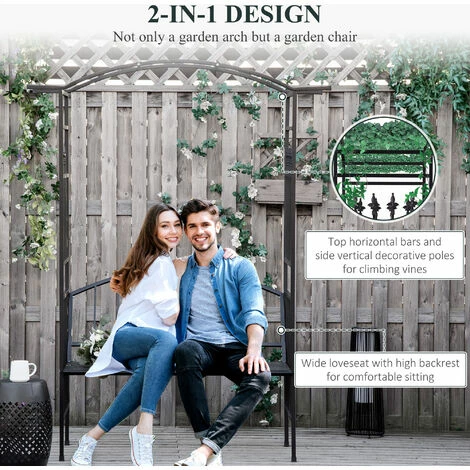 Look to this bench arch from Outsunny for the ultimate charming spot to sit in your garden. A duo design, it blends together a two-seater bench with a traditional garden bench to give you a piece which is sure to attract all the right attention. Formed from metal with a powder coating, the frame is tough and durable to ensure it lasts in your garden for seasons to come, with bars on the sides and top to allow you to hang baskets from and grow vines around, whilst the scrolling on the back of bench adds extra beauty. Slatted all over to prevent water build up and damage, as well as allowing air to pass through whilst you are seating on hotter days, the bench is wide and big enough to relax with a friend. A must for anyone who wants to create a unique feel in their outdoor area.