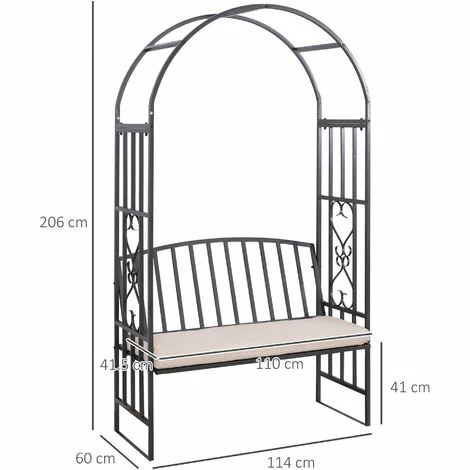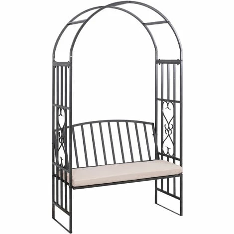 Invite a charming feel into your garden with outdoor bench from Outsunny. Made from metal with epoxy topcoat, the outside bench is crafted into a large arch design. Accompanied with a large seat and plus cushion, make this garden arbour with seat ideal for resting. Sturdy enough to support climbing plants and hanging baskets, the main arch is great for creating your own unique paradise and our 2 seater garden bench is great as a temporary addition for garden parties, weddings and more.