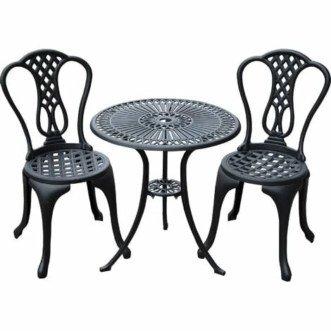 Add some continental elegance to your garden or patio with this stylish and classic garden bistro set for 2. The aluminium garden furniture sets include 2 chairs and a matching table, which is perfect for dining or drinking in the fresh air. Hand crafted from solid cast aluminium and designed in an exceptional shabby chic style, our garden bistro sets will enhance your outdoor experience and bring a style to your garden.