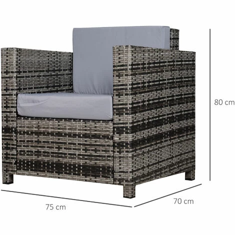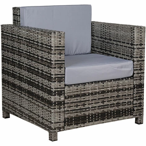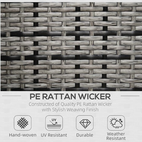 The comfy garden chairs from Outsunny. Using galvanised steel for the frame to prevent against rust and damage outdoors, it is wrapped in rattan, can be cleaned easily and is a mainstay in your garden furniture. Each thick and plush, as well as being water-resistant and having washable covers, two grey cushions are placed on the front and back for supreme comfort, with rattan garden sofa finished with a high back and armrests for plenty of support. A great way to sit back and relax in the sun.