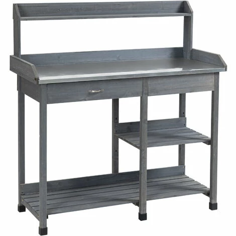 This potting table bench from Outsunny has a simple appearance yet flexible functionality to bring an awesome addition to your garden or backyard. Made of solid wood, the wooden potting bench looks natural in any outdoor setting. The surface of the garden potting bench tabletop is rust-resistant. The small slatted shelf, and drawer of this garden potting table provide storage for pots, tools, and seeds. Check out this outdoor potting table and add convenience to your life outside.