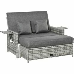 A two-piece garden day bed which can be used together or separately: lie or sit in the sun with this rattan lounger from Outsunny. The two-seater sun bed back is adjustable to different positions