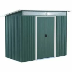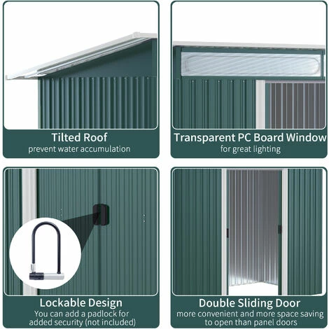 This Outsunny outdoor storage shed is a safe and protective way for keeping tools, equipment and outerwear stored. This corner garden shed is also spacious enough as a bike storage shed for the outdoor adventurers. Made from corrugated steel, the galvanised shed is strong, fitted with a sloped shed to prevent rainwater building up. Two clear front panels allow sunlight to drench through – outdoor sheds easy to see inside. Complete with two lockable sliding doors to enter and leave with ease.