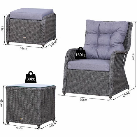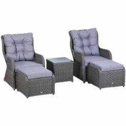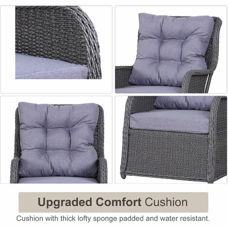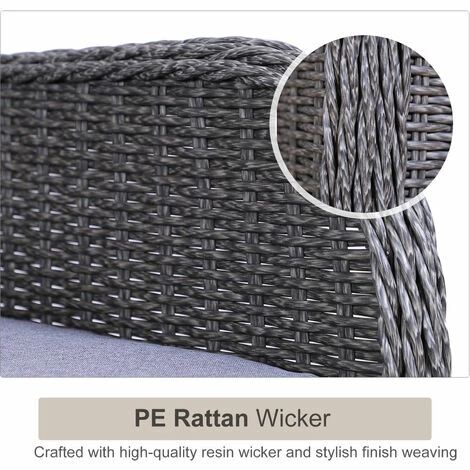 Upgrade your garden seating with this garden sofa from Outsunny create a modern look which will look great for years to come. PE wicker is wrapped around the frame of the 2 seater rattan sofa, providing extra durability and resistance against light weathering for prolonged use, with thick cushions placed on the seats and backs for comfort you’ll love sinking into. Two footstools of the conservatory furniture provide room to rest feet, with a matching table for placing drinks.