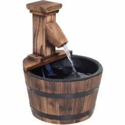 • Retro styled wood barrel fountain pump adds a unique touch to your garden and outdoor areas