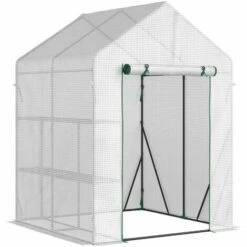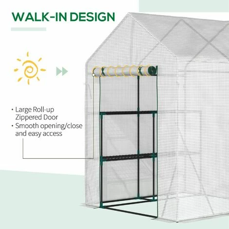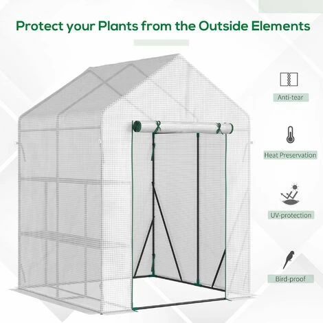 Get this portable greenhouse from Outsunny to extend your growing season by protecting plants from cold and birds. It comes with a steel frame for a steady core. The PE cover creates a protective shell, holding in the heat and shielding from wind and rain. The roll-up door, with zip fastening, allows you to enter and leave to access your plants at any time. Simply put up, go and grow. Do not leave standing in heavy weather conditions.