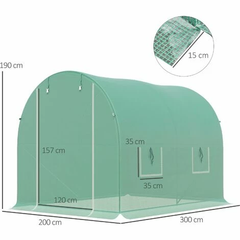 This Outsunny walk-in greenhouse tunnel is ideal for year-round gardening. Features a durable polyethylene covering with grid threading on a sturdy galvanised steel frame for long-lasting use. A large zippered door makes for very easy getting in and out of the poly tunnels with door. Our greenhouse tent is ideal for seeding, or just to protect your young plants from cold. This greenhouse design brings the protective surroundings that you need, for a purpose-built greenhouse.