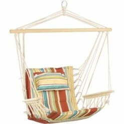 Cocoon yourself in comfort, creating the ultimate hideaway place outdoors with this garden hammock chair from Outsunny. With a rigid structure, the hanging chair can handle up to 150kg, and is formed from thick high-quality grade rope for safety, with the seat securely attached for full support. And the hanging seat is finished with wooden armrests and a wooden bar on the top to keep the balance central and stable. A spot you’ll love sinking into for a long afternoon under the sun.