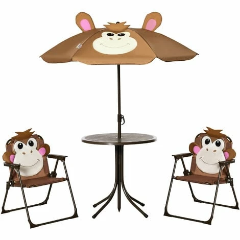 Kids will have their own space outside to play, eat and relax, thanks to this Outsunny garden set. There are two chairs included, so they can have fun and enjoy games with a friend, whilst the adjustable umbrella provides shade for those extra hot days. Its cool monkey design creates a fun and vibrant atmosphere that children will love. The umbrella and chairs are foldable, so they can easily be stored away without taking up much space.