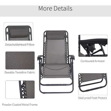 Take your sun relaxation time to the next level with reclining garden chairs from Outsunny. Evenly distributing your weight, the anti gravity chair lifts you up from the floor for total relaxation, whenever. Made from sturdy steel in a powder coated finish, the frame of garden loungers is strong and resistant to peeling. The back reclines to lean back easily, with a padded headrest for comfort. The gateway to relaxing in the garden, patio or balcony.