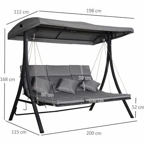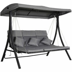 Take your outdoor relaxation times to the next level with this wide metal garden swing bench from Outsunny. Attached from the top via four metal chains on 3 seater garden swing’s each side, and supporting up to 270kg. In a smooth, curved design for superior comfort, garden swing hammock is fitted with thick padded seats which can be removed for easy cleaning. Weather-resistant, the adjustable overhead canopy offers protection from mild weather. A blissful way to enjoy your afternoon.