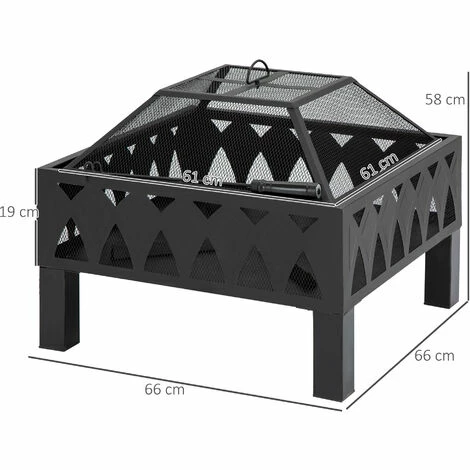 Creating a leisure time, almost anytime, with your family, thanks to the garden fire pits from Outsunny. The square basin body is cool, with geometric cut-out patterns to add style. Comes with a mesh cover to help sparks fly out and hurt you. Strong metal for long-time use. Stylish and practical, this fire bowl for garden is a must for making cooler outdoor times bearable.