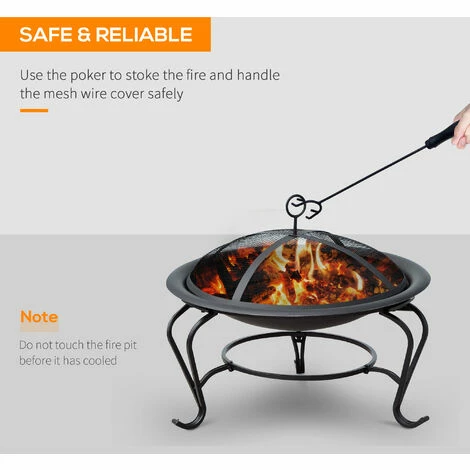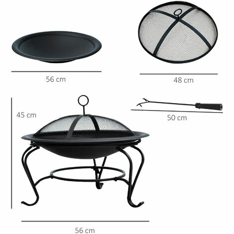 This Outsunny wood fire pit is a great addition to your outdoor living, it offers a great place to create a warm fire using wood or coal. Made from solid steel, the camping fire pit can withstand up to 500℃, and comes with a mesh cover and a poker. When sitting around, our fire pits for garden can give you a 360 degree view around the fire for you and guests to sit comfortably. A great compliment to your outliving and a perfect item to have during the cool evenings.