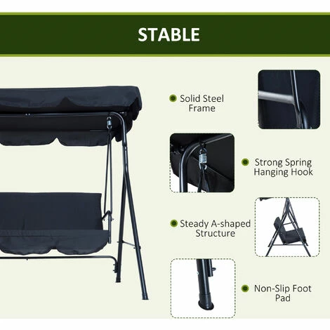 This Outsunny 3 seater garden swing is the ultimate for relaxation in the comfort. Spacious in size to seat up to three people, the chair provides plenty of room to relax with friends or grab extra room for yourself. Perfect for everyday use in your garden and outdoors, with an adjustable angle overhead canopy to shield you below from sun glare, UV and light to medium showers. A must-have for those looking to liven up their garden just in time for Spring, Summer and beyond.
