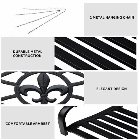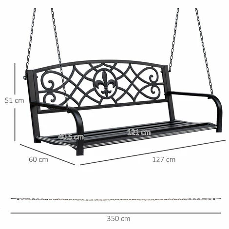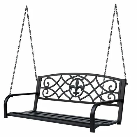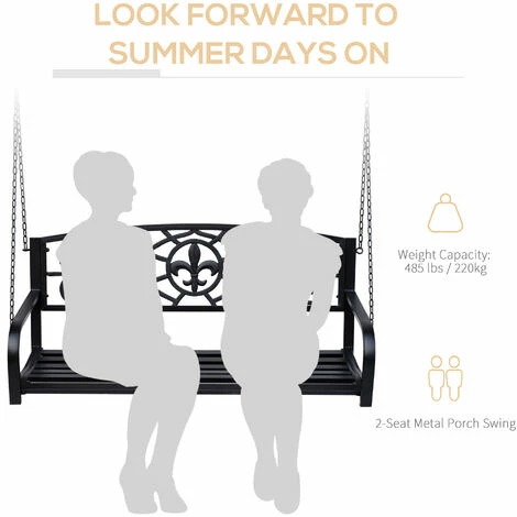 Complement your outdoor furniture set with this great porch swing from Outsunny. Featuring a simple but beautiful fleur-de-lis design, this bench blends elegant style with minimalist taste. The frame is constructed from sturdy and rust-resistant steel that is built for longlasting durability. Comfortable and functional, the seat can hold up to 2 adults for a maximum weight capacity of 485 pounds. Customize your look by adding cushions that reflect your own personality and style. Sit back and relax with this gorgeous metal swing bench!