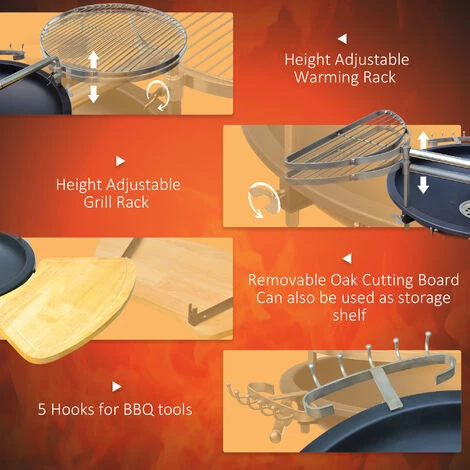 This Outsunny charcoal barbecue is a great addition to your outdoor cooking, with its great combinations it has a variety of options. Made from steel, with stainless steel cooking grills and a wooden side chopping board for preparations. The bbq grill’s main grill can easily be adjusted in height to ensure perfect cooking and the secondary grill can be used to store cooked food to keep the temperature up. It also has a vent at the bottom to remove the ashes from the main burning area.