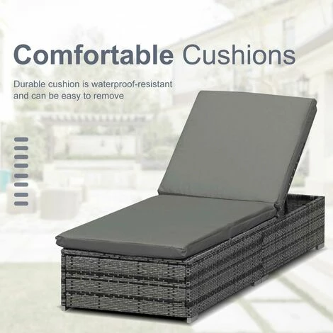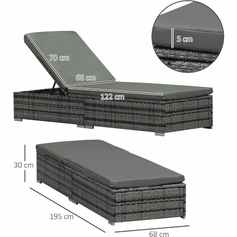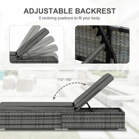 Choose this lounger from Outsunny for the perfect sunbathing partner in the comfort of your own garden. Using galvanised metal for a stable and robust structure, the frame is wrapped in PE wicker rattan, ensuring durability outdoors with little maintenance. The back, adjustable to six different positions allows you to set it to a level which is best for you, whilst a longline padded seat provides all the comfort you need, with four adjustable foot pads completing this piece for balance and floor protection. A must for any sun lover…