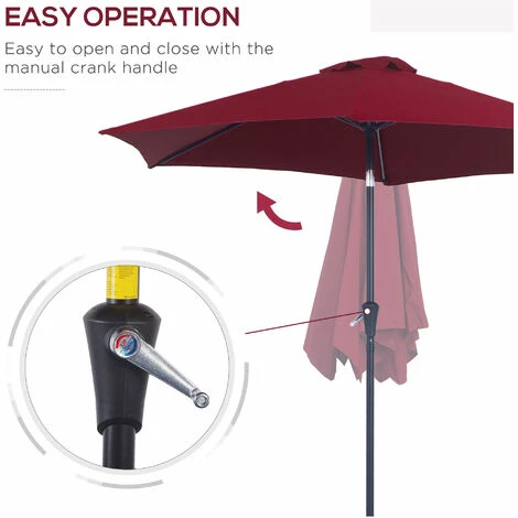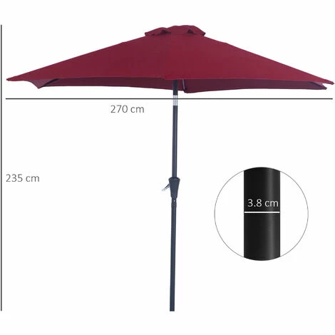 The Outsunny large garden umbrella is ideal for enjoying the shade on sunny days that can tilt for better protection. Constructed with a metal frame and the shade is made of polyester fabric. It features classic colour and sleek lines and is designed to maximise the shade capability. Suitable for patio and garden, and can be used with existing garden furniture. The metal structure and 180g/㎡ polyester fabric give optimum support and stable features.