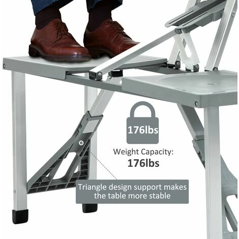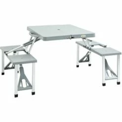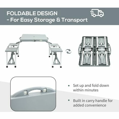 Take the effort out of dining at picnics, BBQs, camping trips and more with this folding picnic table and chairs from Outsunny. Portable in design and collapsing into the suitcase top for easy carrying, its aluminium construction ensures it is lightweight yet tough. This camping table features four seats, and there is plenty of room to sit with friends, whilst the umbrella hole in the middle allows you to keep a parasol to protect you from the sun – making it ideal for use all year round.