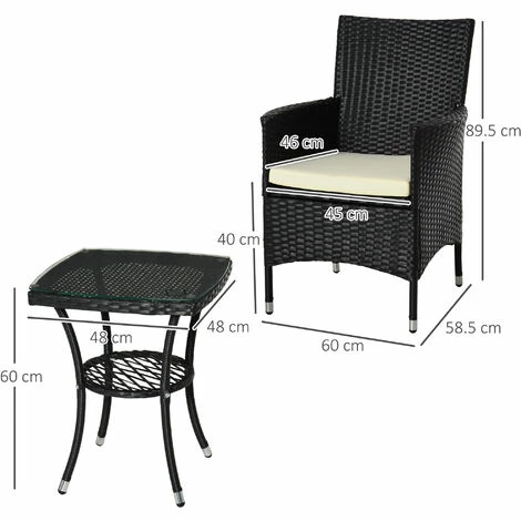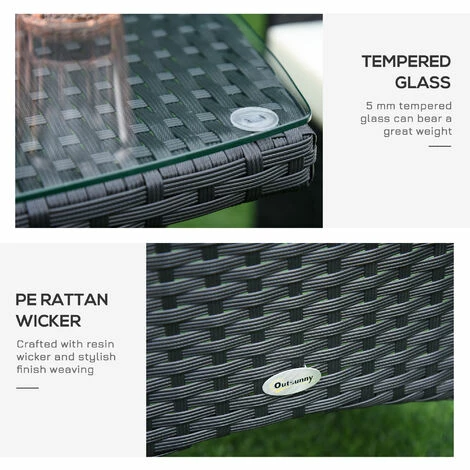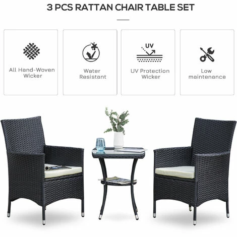 Outsunny 3pcs furniture set perfect as a conversation set for any patio, deck, sunroom, or garden, our Outsunny rattan coffee table and chairs will create a classic centerpiece in any setting. Made from PE wicker rattan, this set is UV resistant, water resistant, and is built to last. These lightweight chairs and table are easily movable and simple to store as the seasons come and go.