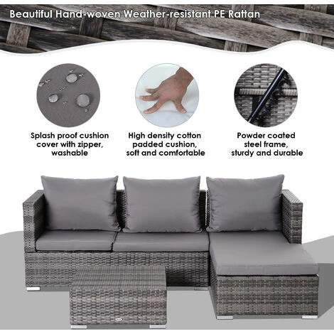 For an effortless blend of style and comfort which revives your garden this season, opt for this outdoor dining set from Outsunny. A unique and beautiful mixed grey colour scheme, the garden furniture sets feature a 2 seater rattan sofa, a two-seater sofa with a single reclining back and a square coffee table with storage – meaning you have everything you need for an afternoon of lounging with family and friends.A reclining back on the sofa adjusts to five different levels for you to lean back.