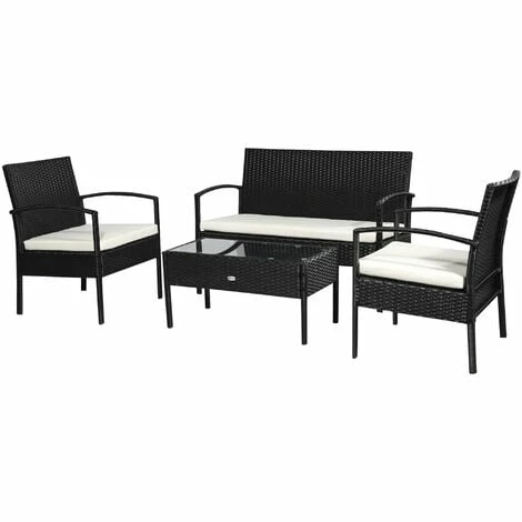 This 4 piece garden sofa set is a perfect solution for any garden, patio or conservatory. It is made of high quality steel and covered with PE rattan, it comes complete with a cushions which are covered with a flame retardant polyester. It has been designed with style and elegance so it can look at home in any décor. The table is also topped with a 5mm tempered glass for you to place drinks or magazines. This is a great choice with a minimalistic look.
