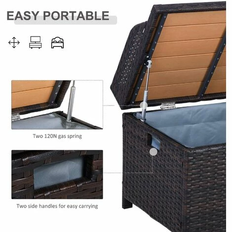 This rattan storage box with seating for two persons is a great addition to your outdoor living. Made using an aluminum frame and covered with PE rattan, it will not rust and fade. With seating for 2 and a storage box underneath to keep the the seating cushion when not in use. Use the storage area to keep magazine and books handy, while enjoying the outdoors.