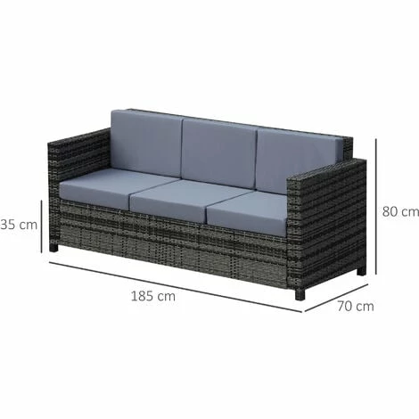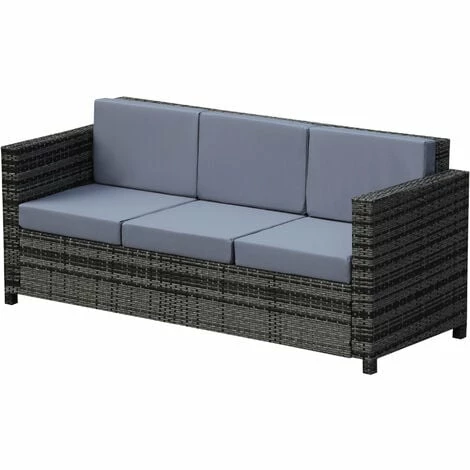 If you love to lounge outdoors, this three-seater outdoor sofa from Outsunny is the piece for you. Using a combination of a power coated and galvanised frame for the core, with plastic wicker, this piece has been made to last for years, with extra thick cushions on the seats and back. High on the back, with high armrests and longline seats for support, this sofa is finished with four feet to elevate and protect the main frame, as well as keeping it level and balanced on the floor.