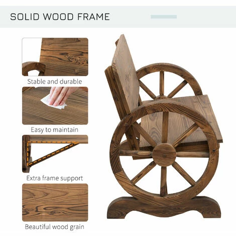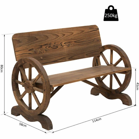For a unique touch to your garden and outdoor areas, opt for this wooden bench from Outsunny. Drawing upon Texan wagon wheels for inspiration, its design blends a two-seater bench with large wheel accents on the end. Made from fir wood, the outdoor bench is solid and sturdy, handling up to 250kg in weight with ease. With a wide seat and the high, slightly angled back, our wagon wheel bench will ensure you sit comfortably as your body is supported.