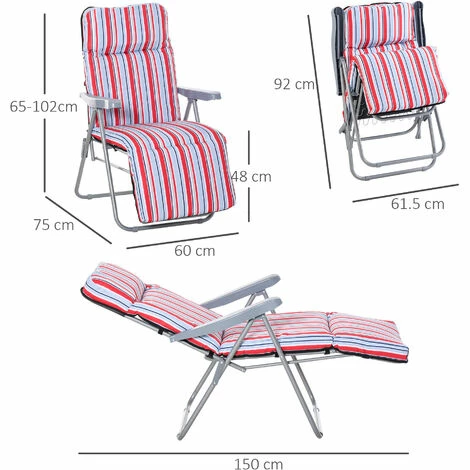 • Foldable padded garden lounger with 5 position reclining adjustment