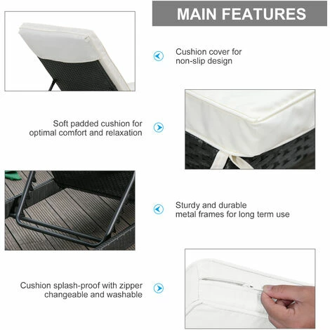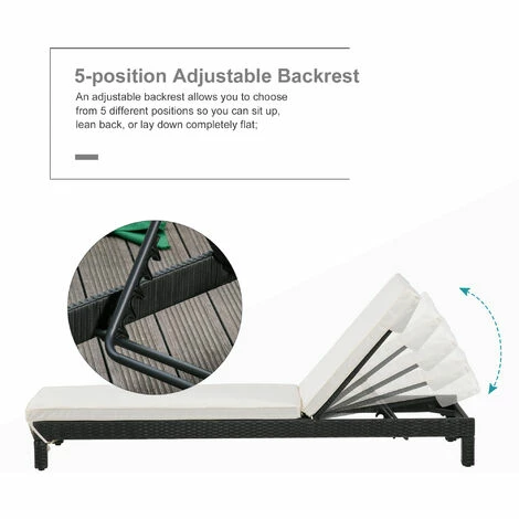 This two-set rattan sun lounger from Outsunny is perfect for relaxing in the sun for hours on end. Made from weather resistant PE wicker, each chair can withstand the wind and rain along with sun exposure, making it ideal for year-round use. Underneath sits a powder coated steel frame for extra stability and UV protected, foam filled cushion to allow you to lie in complete comfort. Adjustable to 5 positions, making each lounger an excellent choice for your garden, patios, poolside and more.