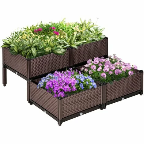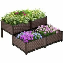 Our 4-piece planter box is a better way to grow plants at home. Raised garden beds are ideal for small patios, decks, balconies, condos, apartments, and more. Lightweight and durable PP material lets this garden box serve you for many seasons to come. The elevated plant bed enables you to garden in comfort, alleviating the need to bend or stoop. With this smart planter bed, you can start to grow tomatoes, vegetables, herbs, or your favorite flowers anywhere!