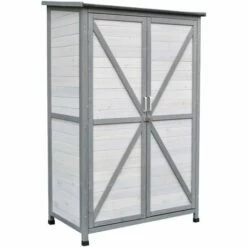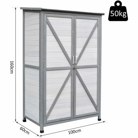 Bring enduring style into your garden and outdoors, whilst giving equipment and tools a safe place to rest with this wood garden storage shed from Outsunny. A solid fir construction for strength and reliability, with a lick of water-resistant paint all over, with a fully open right side providing space for keeping tall pieces stored. On the top, a tilted roof with asphalt prevents water built up and liquids seeping through inside, with a handle on the two doors with a lock for security.