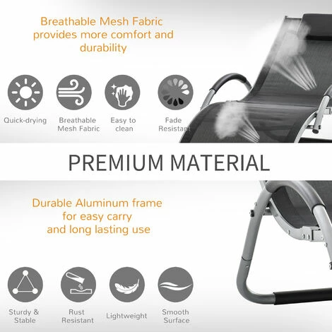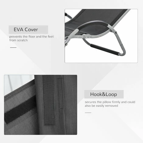 Outdoor lounging just got a lot better. Pair your days outside with this Outsunny lounger for complete relaxation. The frame is made from aluminium to be suitable for everyday use, is crafted into a smooth curved shape that better adapts to your body shape. It’s fitted with a breathable mesh fabric seat that holds your body in place, with a removable pillow for extra comfort and support to the head and neck. Finished with foam pads on the armrests and bottom frame part for extra protection.