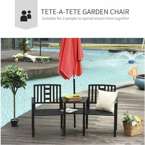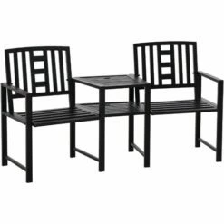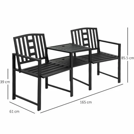 Ensure all your hours spent relaxing in the sun and outdoors are as enjoyable as possible with this love seat from Outsunny. Made from metal for a tough and durable structure, it is crafted into two single-seat design with a middle table – providing room for you and a friend to sit and enjoy the fresh air. Slatted all over to prevent water build up and allow air to pass through, it is finished with a middle hole in the table to steadily hold a parasol.