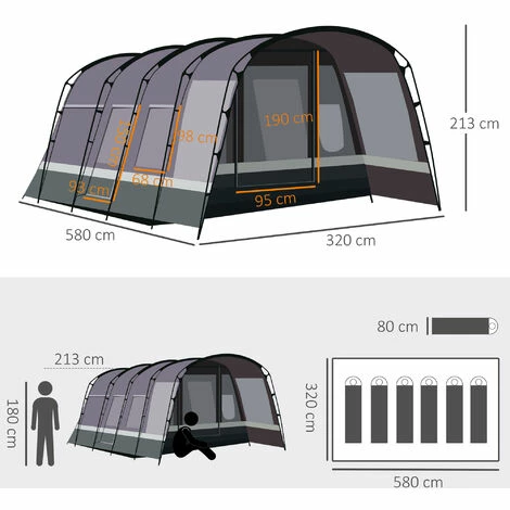 Camping number restrictions need not apply: this eight-man Outsunny tent provides plenty of sleeping and socialising room for outdoor adventures. Using steel-fibreglass blend poles for a shape which stays in shape, it’s fitted with a weather-resistant polyester canopy to shield you inside safely. The side and large front windows allow you to see outside/inside easily. Inside, there are removable walls – create a one-room space, or keep it separated when required. Comes with pegs and guy ropes.